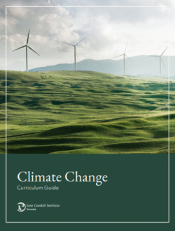 The Climate Change Curriculum Guide by the Jane Goodall Institute of Canada provides an overview of climate change, helping students understand its causes, effects, and possible solutions. The guide’s accessible and flexible format makes it well-suited for middle years classrooms. As an introductory activity to the resource, students are encouraged to listen to Jane’s primer on talking about climate change.