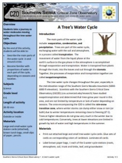 This activity is perfect for an outdoor learning experience where a class can explore and move while developing their understanding of the water cycle. As students simulate water molecules travelling as precipitation into the tree and back into the atmosphere through transpiration they also learn about the essential water storage capabilities of the soil, roots, trunk and limbs.