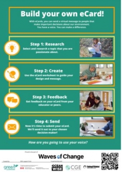 By sending an eCard to a decision maker, students express what they have learned through their research and what matters most to them. Through art and writing, eCards supports environmental education and advocates for students to take meaningful, collective action. An excellent tool to empower young people to make a difference.