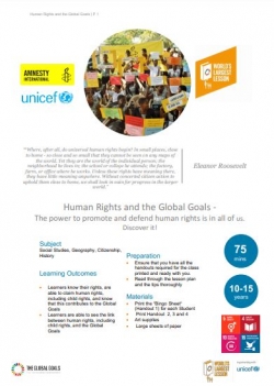 This lesson plan will help assist young students in better understanding human rights. Students will discover their rights, will be able to claim human rights, including child rights, and will know that this contributes to the Global Goals.