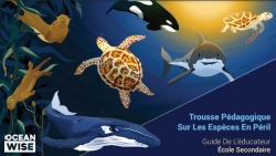 Dans le nouveau kit éducatif sur les espèces en péril (SAR), chaque leçon aborde une espèce en péril par le biais d'une initiative de conservation Ocean Wise. Les élèves découvriront l’interconnexion des espèces marines en péril, telles que la baleine à bosse, l’orque, le grand requin blanc, la tortue de mer à écailles et la loutre de mer, face aux menaces océaniques les plus pressantes, notamment le changement climatique, la perte d’habitat, la surpêche et la pollution des océans et du plastique. Équipés des connaissances et des outils appropriés, les élèves vivront une expérience d'apprentissage marquante qui leur permettra de devenir des champions de l'océan et des gardiens des espèces en péril.